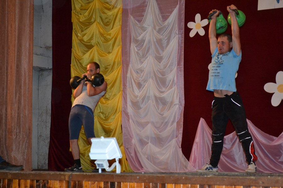 Гиревой спорт популярен почти во всех поселениях. Не выбрали этот вид только в буняковке и Орехово. В общем зачете с наибольшим количеством очков победили ганновцы. Отстав от лидеров на пять очков второе место заняли гиревики из Белостока, третье - из Лукьяновского казачьего поселения. Далее места распределились так: одесситы заняли четвертое место, благодаровцы - пятое, желлановцы - шестое, последнее, седьмое место присудили Побочинскому поселению. Кстати, за это село выступала только одна девушка - Виктория Варламова.