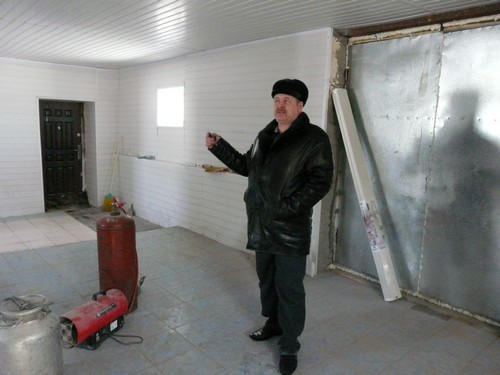 - Совершенно верно. Взял здание старой бани в Брезицке. Правда, от нее оставались только стены. Решил ее отремонтировать. Вставил пластиковые окна, стены зашил панелями, на пол положил керамическую плитку. Здесь будет лаборатория, и стоять три танка – охладителя. Я работаю с омскими перекупщиками, и они дают оборудование в безвозмездное пользование. Сейчас сбор молока организован из 190 дворов в шести селах района.