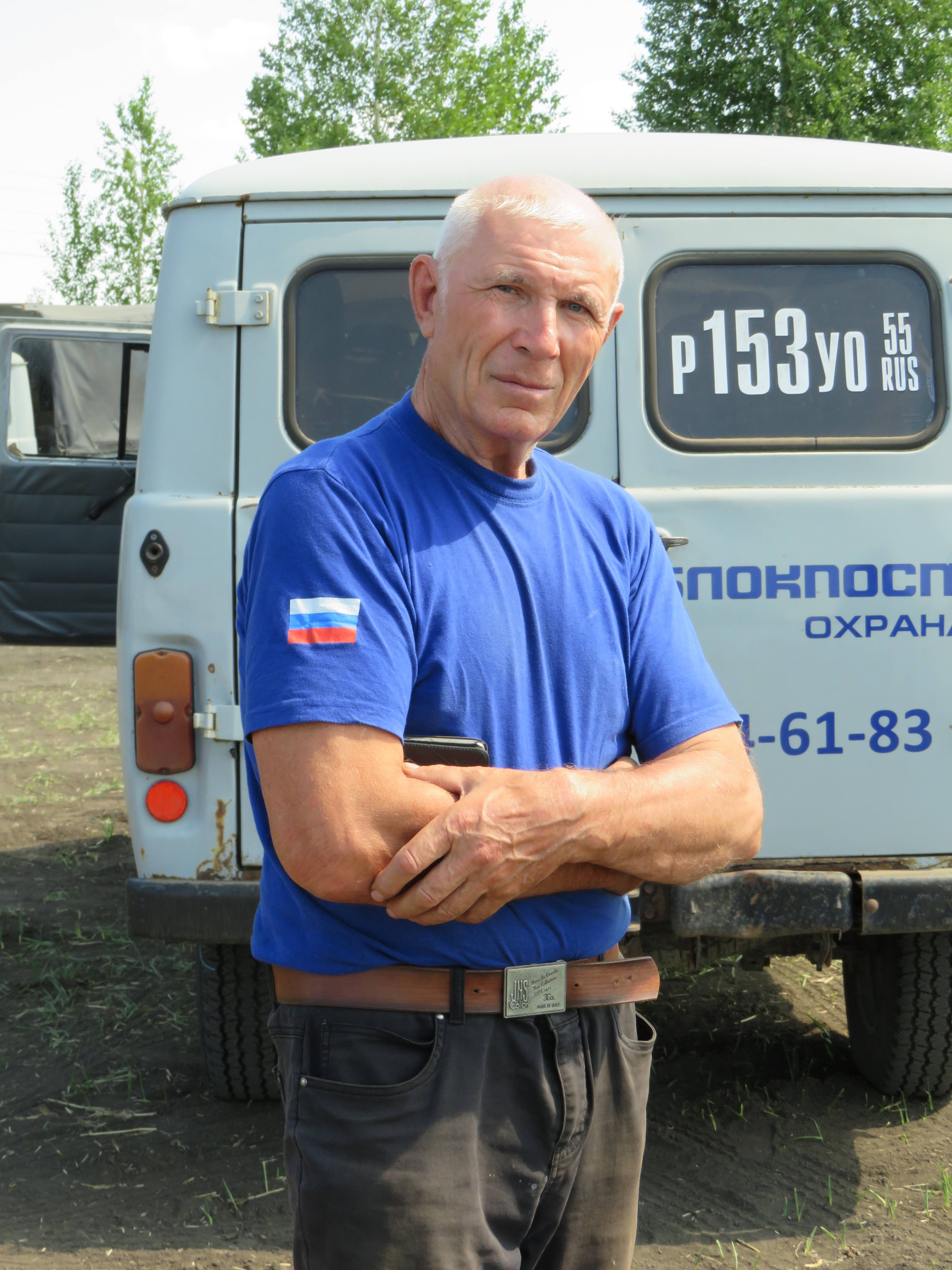 Компанию водителю сейчас составляет охранник из Таврического Шакрат Жусупович Малаев. Работает он в ООО «Вооружённая охрана «Блокпост». С 9 июня, после того как на поле между Ганновкой и Благодаровкой привезли полиэтиленовую трубу и пригнали технику, Шакрат круглосуточно охраняет вверенную ему территорию: