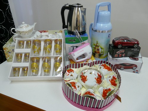 Первый приз в 5000 рублей выиграл обладатель билета ОМ-1 N 009596. Билет МИ-12 004076 выиграл чайный сервиз, билет ОМ-1 N 010886 также - чайный сервиз, ОМ-1 N 006239 – набор бокалов, МИ-12 002160 – электрочайник, МИ-12 003811 – термос, ОМ-1 N 008789 – миксер. Магнитофоны, встроенные в миниатюрную модель автомобиля, выиграли билеты: ОМ-1 N 010140, ОМ-2 N 000728, ОМ-1 N 009312.