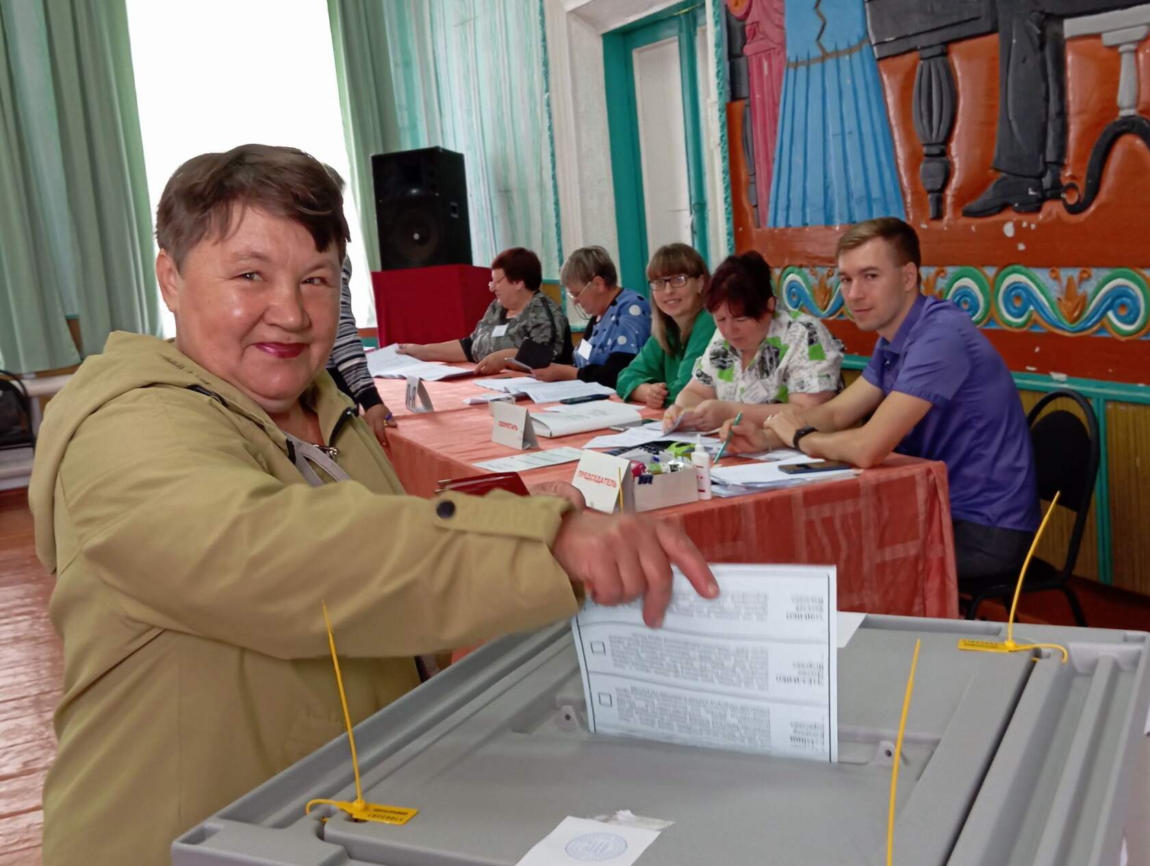 Избирательный участок N1271 в Ганновке расположен в сельском клубе, здесь очень тепло, потому что учреждение культуры отапливается природным газом, и включают его в любое время. Как сообщила председатель Оксана Николаевна Кобец, по данным на 11 часов проголосовали 246 человек - это 44 процента избирателей, в том числе 32 жителя голосовали на дому. Комфортно здесь выступать и самодеятельным артистам, только что что они показали часовой концерт. Вчера активно шли голосовать молодые: в первый раз голосовали Данияр Алмаканов, Николай Любарский, Милана Матвиенко, Данил Дьяченко, Данил Хрущ, Мария Сансызбаева. Чтобы активизировать явку глава поселения Марина Саюн объявила акцию - каждого десятого человека, кто придёт на участок после 12 часов будет ждать сувенир