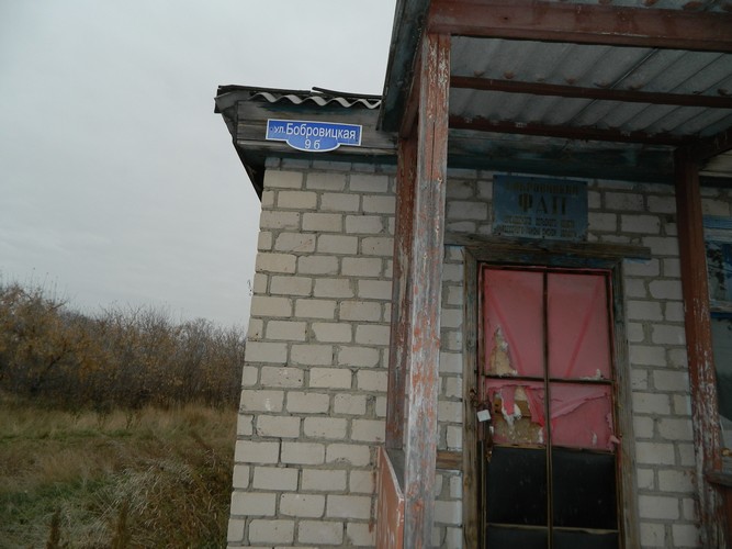 Деревня Бобровица постепенно пустеет на 50-й версте от Одесского. Свидетельством тому уже на въезде является сельский магазин, принадлежщий системе РайПО. Невооруженным глазом видно, что он давно не работает. Довольно большое здание, на обветшалой двери виднеются куски старой ваты и простой замок. И замок, и решетки на окнах - все на месте. Правда, стекла кое-где уже выбиты. Здесь же в свое время находился и ФАП.