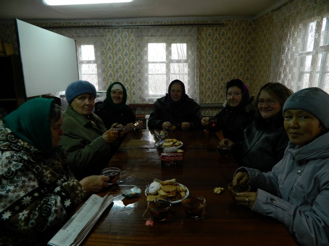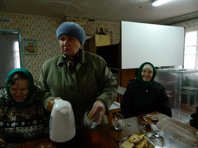 А староста деревни Лилия Васильевна Горбенко как хозяйка этого большого дома ставит электрический чайник. На столе появляется угощение - конфеты, зефир, печенье. И все с удовольствием приступают к чаепитию. Им хорошо, они здесь привыкли, и ни о каких переменах в своей жизни большинство не помышляет.