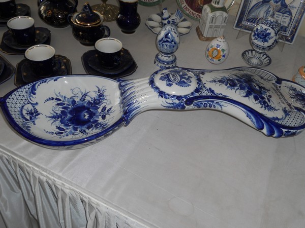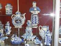 Интересно, что глиняные изделия до обжига в печи имеют розовый цвет, а рисунок на них черный. А после двух обжигов в печи посуда становится бело-синей. И славится во всем мире!