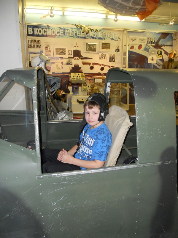 Музей занимает трехкомнатную квартиру в пятиэтажке, но в ней столько интересного! Там я увидел настоящую кабину советского самолета времен Великой Отечественной войны и даже посидел в ней. Здесь можно было надеть шлем, перчатки, скафандр и даже совершить виртуальный полет с экскурсоводом! А после экскурсии я долго «летал» на специальном компьютере, но ни разу мне не удалось сбить вражеский самолет. Экскурсовод сказал, что это под силу только профессионалам…