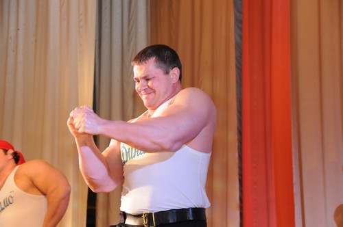 Выходят на арену силачи,