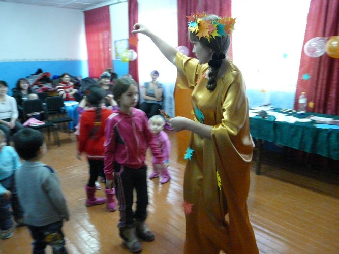 Открытие проекта - "Праздник осени" состоялся в здании досугового учреждения, на него пришли 14 детей в сопровождении взрослых. В празднично украшенном зале гостей встречала Королева Осень.