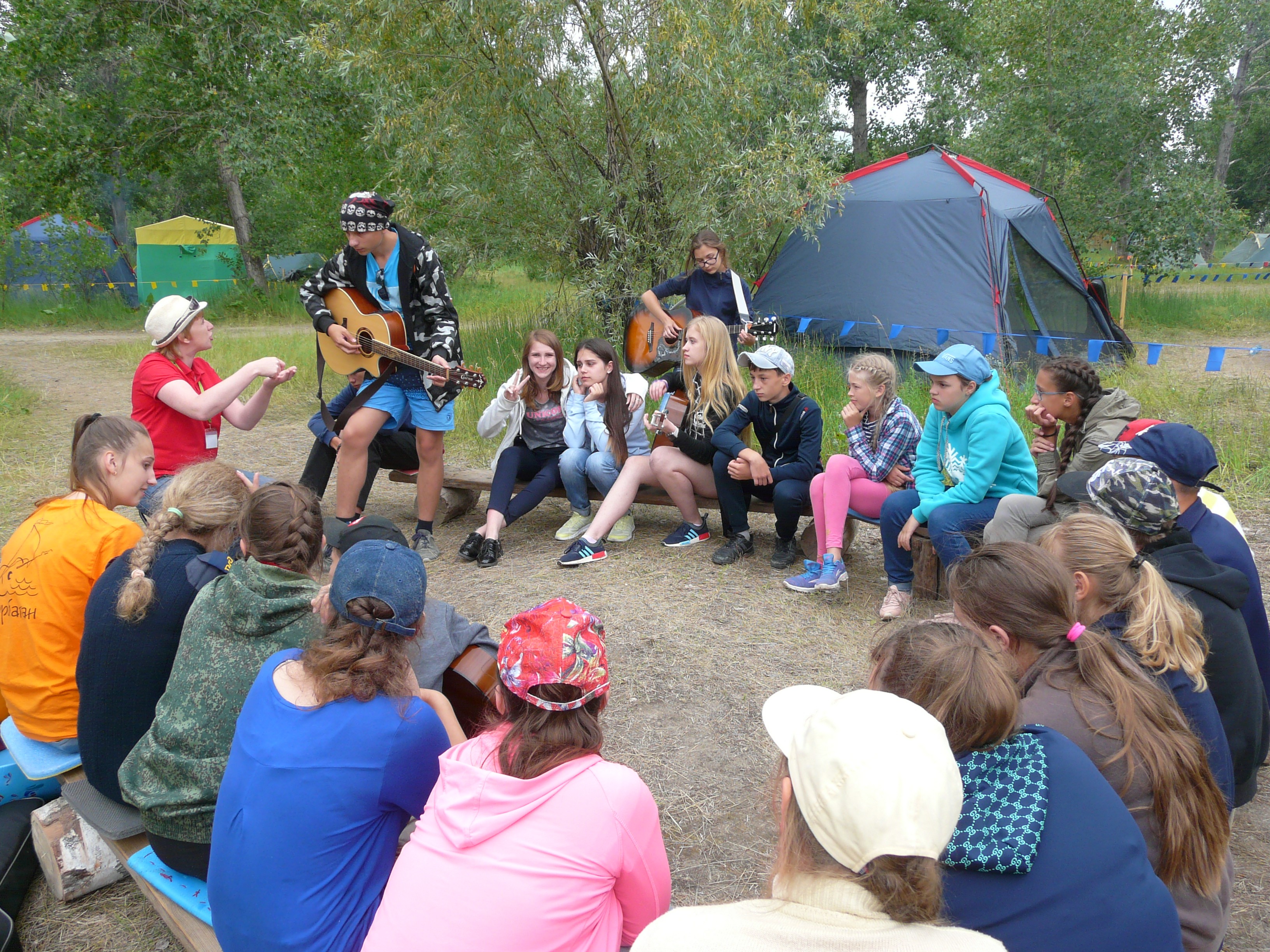 В день, когда мы приехали работать в лагерь, здесь была намечена обширная программа- дети в этом палаточном лагере без дела не сидят, а тут ещё понаехало всяких спецов-мастеров, детей расхватали, и мы еле успели встроиться в программу. Чего только не предлагали ребятам: мастер-класс по вокалу, по игре на гитаре, актёрское мастерство, умение фотографировать, монтировать видеофильмы и слад-шоу.